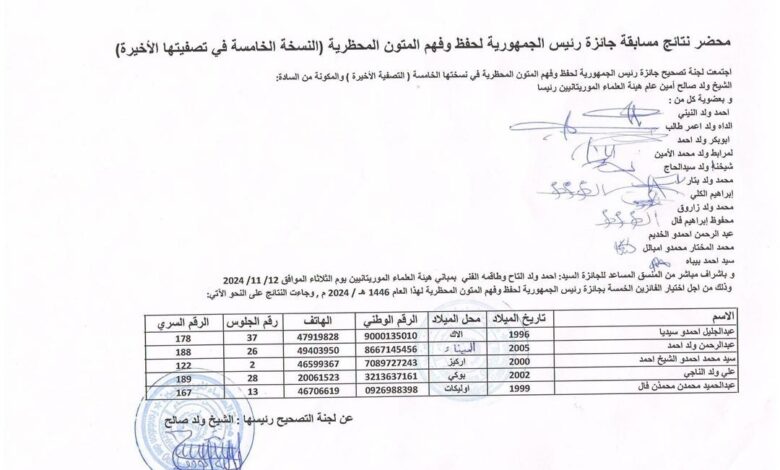 أسماء الفائزين في مسابقة “حفظ وفهم المتون المحظرية”